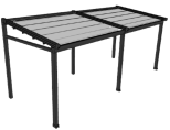 Acest tip de pergola este executata integral din aluminiu, este o structura solida, cu elemente de ramforsare pentru o rezistenta marita, acest tip de pergola se poate monta pe structura existenta, spatele pe perete in fata picioare, sau pe structura proprie, partea din fata este dotata cu un jgheab de preluare a apei.